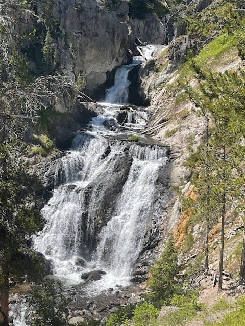 We moved into the more heavily traveled area of the park and hiked Fairy Falls Trail, Mystic Falls Trail, Old Faithful Geyser Loop Trail and Lone Star Geyser Trail. The Fairy Falls Trail offers a detour to an elevated viewing area of the Grand Prismatic, which I highly recommend.