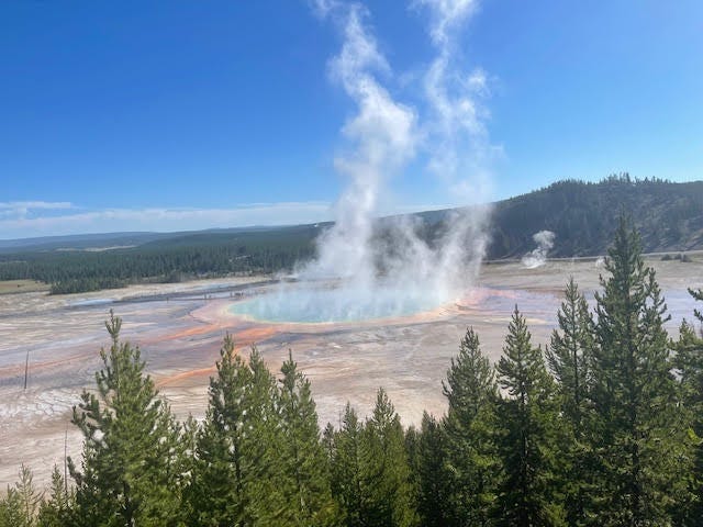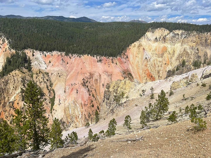 We moved south and hiked Mount Washburn via Dunraven Pass, Point Sublime via Artist Point and Artists Paintpots Trail. Mount Washburn is the highest point in the park. Very windy, awesome views and a suprise weather station at the top with an indoor viewing area to eat your lunch.