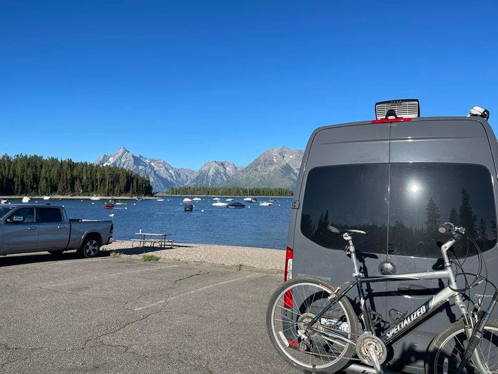 We moved on to Jackson Hole, WY and ended up spending a couple of days there. No need to stealth camp as there were probably 10 vans parked around the downtown park each night we were there. Great resort town with pickleball and lots of nightlife!